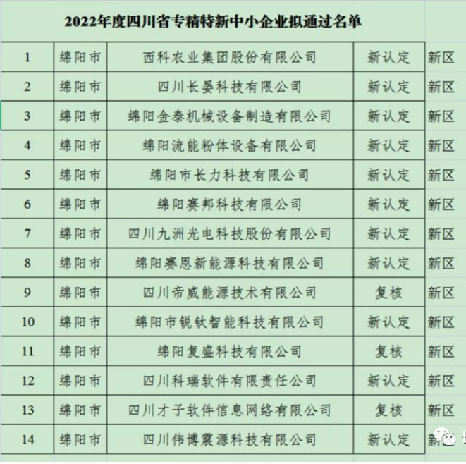近日,2022年度四川省專精特新中小企業名單公示,四川長晏科技有限公司憑借在新材料領域諸多國產化替代成果和科技創新實力光榮入選,榮獲“四川省專精特新中小企業”榮譽稱號。