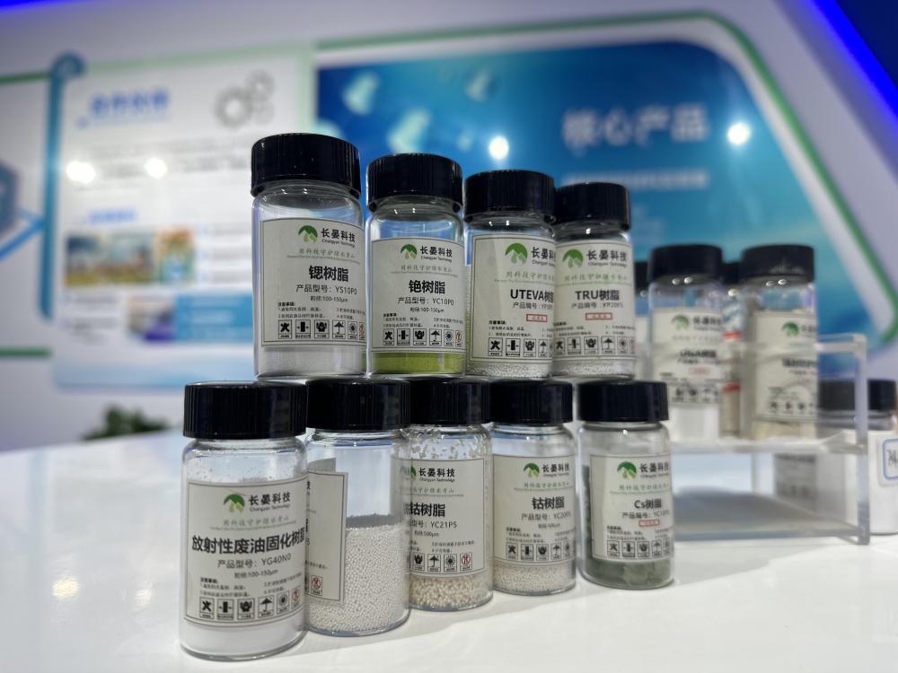 這些瓶瓶罐罐里各種顏色的粉末是放射性核素萃取分離樹脂,它們就是上文中提到的“活性炭”,這是長晏科技的研發成果,擁有自主核心知識產權、國產化替代自主創新的系列材料。