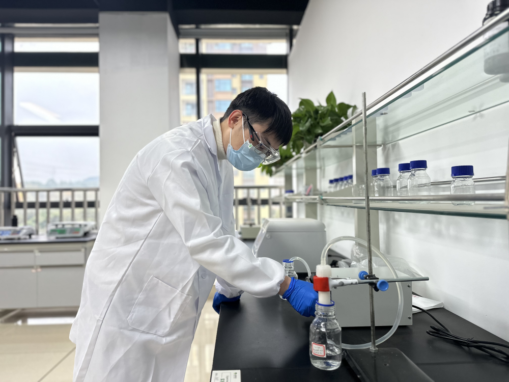 在長晏科技有限公司的實驗室里,研發人員朱杉正在使用相關設備進行核素萃取。為了驗證不同功率下的萃取效率,他反復調整著設備參數。